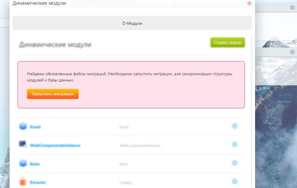 Найдены обновленные файлы миграций. Необходимо запустить миграции, для синхронизации структуры модулей и базы данных.